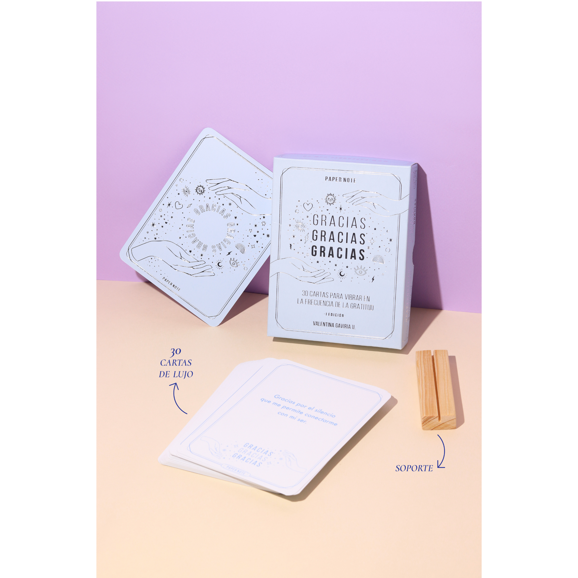 30 cartas de lujo para vibrar en la frecuencia de la gratitud con base de madera.