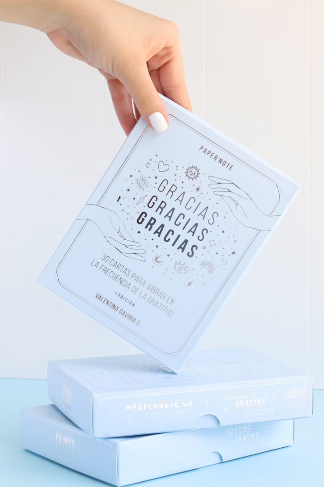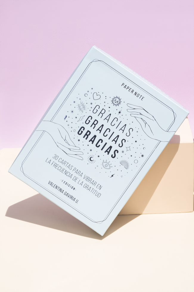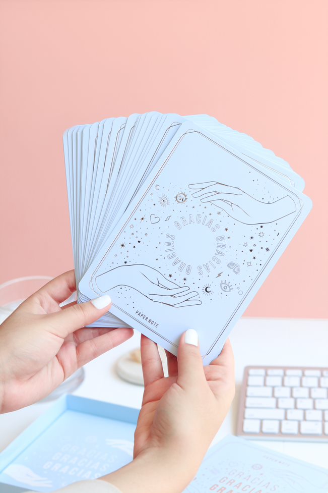 30 cartas de lujo para vibrar en la frecuencia de la gratitud con base de madera.