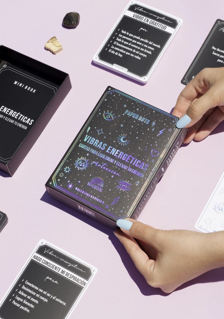Todo es energía, tu eres energía. El universo y tu vida funcionan según la energía que le pongas a tus intenciones y pensamientos. Con nuestras cartas de afirmaciones y vibras energéticas, lograrás tener un espacio para encontrarte contigo mismo, con tu ser y equilibrar tu energía para llevar un estilo de vida más positivo. Cada kit contiene una piedra preciosa (Ónix negro) que será tu amuleto energético para tu vida y tus cartas. Encuentra en el interior un mini book que te ayudará a entender tus vibras energéticas y aprender a usar y programar tu piedra.